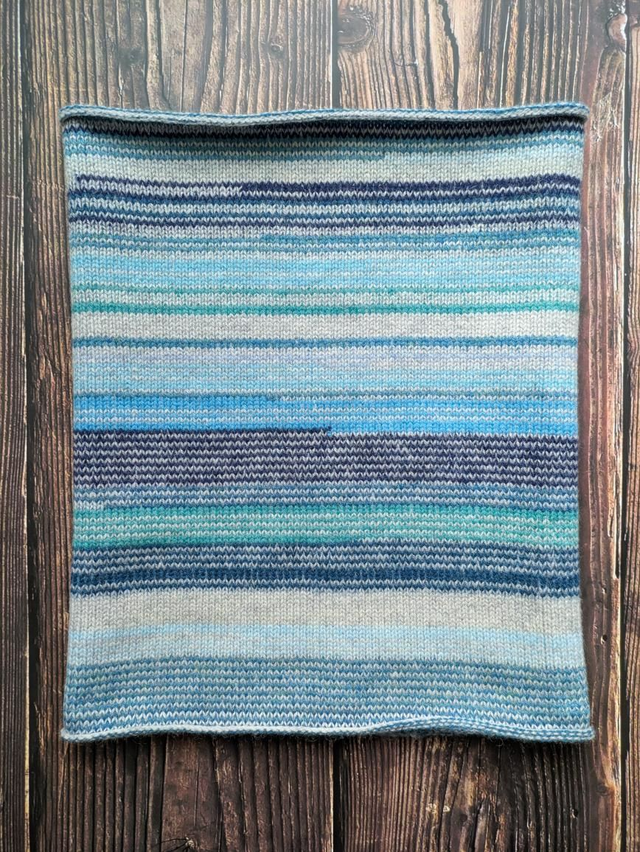 Unique cowl knitted from 100% Merino wool with colours inspired by the ocean.