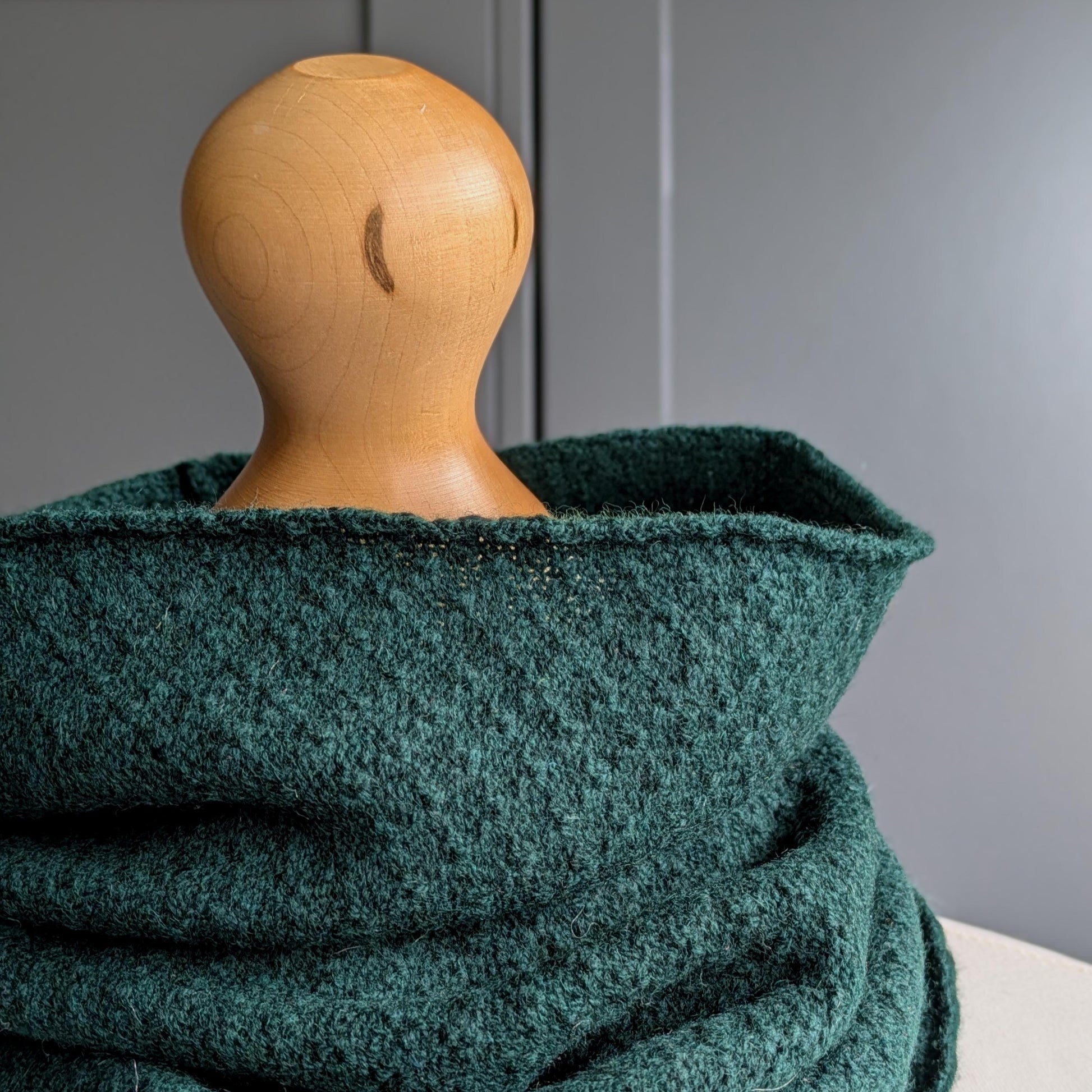 Knitted Merino Lambswool Cowl Tartan Green