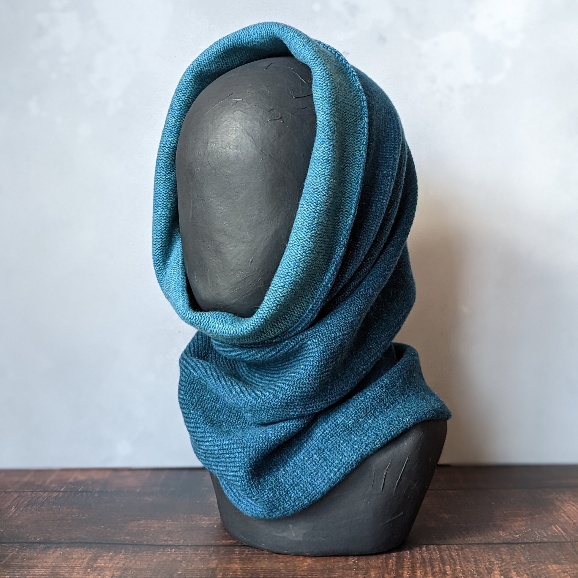 Reversible merino wool snood two tone blue
